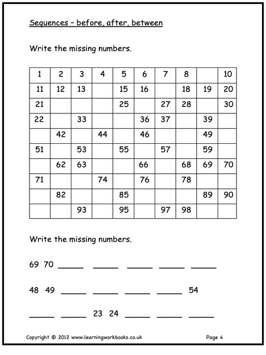 Numbers to 100 Workbook 2: Homework Sheets (downloadable digital product)