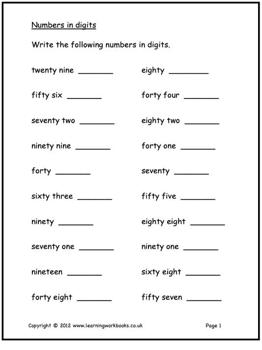 Numbers to 100 Workbook (downloadable digital product)