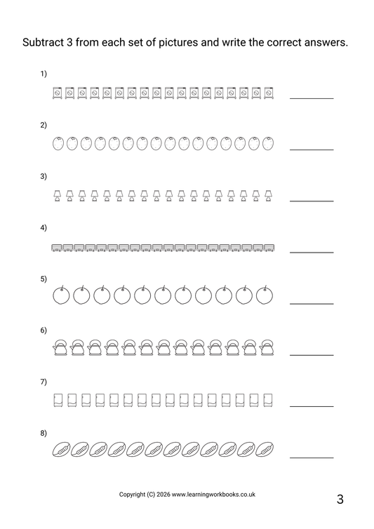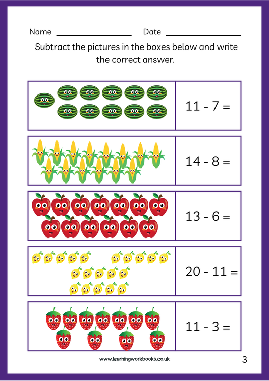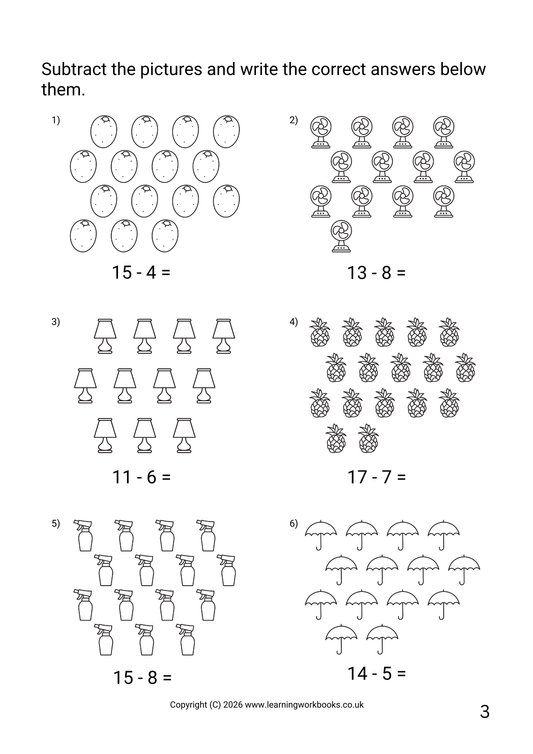 Subtraction to 20 Workbook 3 (downloadable digital product)